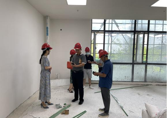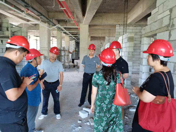 基建处有关负责同志详细介绍了新校区的总体规划和目前各主体建筑的建设进展,带领大家实地参观了已封顶的太阳成集团tyc122cc实验大楼,建筑面积近8千平方米的新实验楼正在装修,党员教师们现场和装修施工方就一些具体问题进行了沟通。