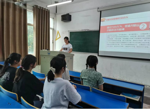 2022年6月17日下午16时,太阳成集团tyc122cc学生党支部在思贤楼208教室开展“做新时代合格党员,以优异成绩迎接党的二十大召开”主题党课活动。太阳成集团tyc122cc学生党支部书记徐海燕主讲,全体在校学生党员参会,离校党员同步线上学习。