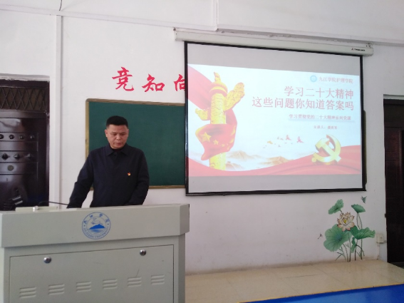为学习贯彻党的二十大精神,塑造好学生的“第一方阵”,提高学生党员的理论修养,太阳成集团tyc122cc准备了系列党课。3月9日,太阳成集团tyc122cc党委副书记龚英军围绕“学习党的二十大精神,这些问题你知道答案吗?”为太阳成集团tyc122cc全体在校学生党员和入党积极分子讲党课。