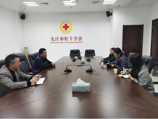 九江市红十字会专职副会长陈顺超接待了蔡院长一行,并对红十字会在志愿者、培训及社会服务方面的需求做了详细的介绍。