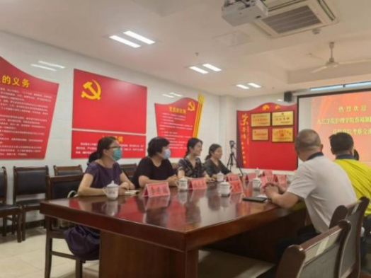 9月16日上午,我院院长蔡端颖、副院长王庆军一行五人前往市五医院,对医院与学院之间为提高临床护理实践教学水平、教学质量,加强院校之间的交流合作进行考察。九江市第五人民医党委副书记、院长朱晶,副院长曹火军,护理部主任瞿春红,科教科、各病区护士长代表参加了交流。