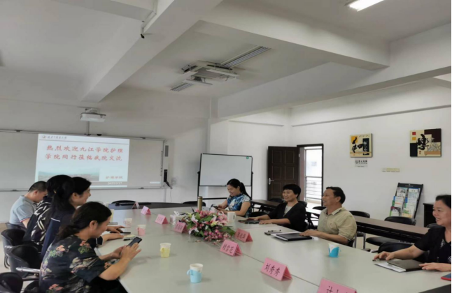 会谈后胡荣副院长陪同我院领导及教师参观考察了护理实验室,双方就实验教学中心的建设、翻转课堂的实施、虚拟仿真实验教学的实施、以及专业课程建设进行交流。
