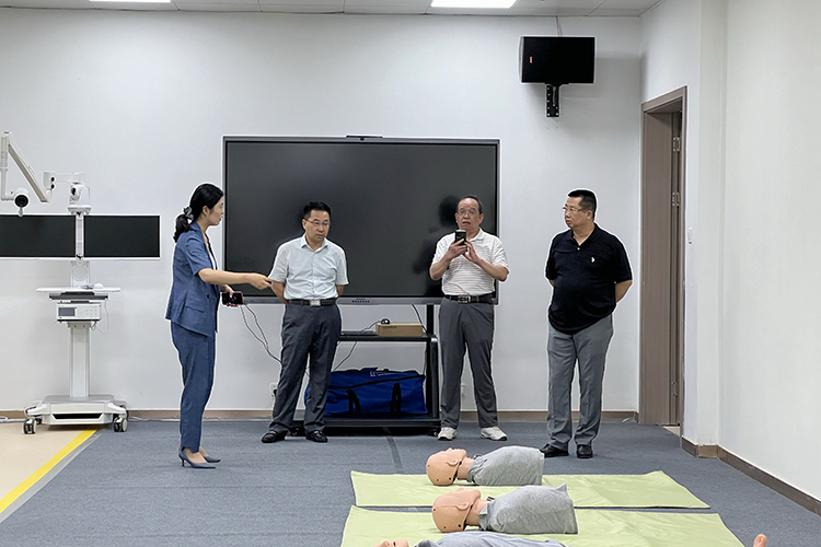 访问期间,杨国桥一行参观了学院的实验室、模拟病房和教学设施,深入了解学院的教学环境和培训条件。