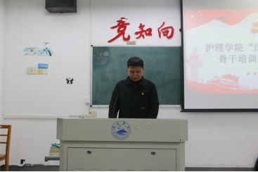 “我们是五月的花海,用青春拥抱时代……”在学员们嘹亮的歌声中,“红细胞”青马工程大学生骨干培训开班仪式正式拉开帷幕。李帅宣读了青马班成员名单,对同学们表示祝贺,为青马班赋能。胥杜鹃肯定了培训班学员饱满的精神状态和认真的参学态度,介绍了本次培训班的教学计划及纪律要求,阐明培训班内容丰富,分为理论学习和实践锻炼,并殷切寄语,期待学员能够成就更优秀的自己,严格按照实践安排,认真学,刻苦练。随后,老师们为青马班授旗,青马班学员代表A2311班李维同学代表培训班学员发言。李维表示将坚定信念,志存高远,不断提升自我,服务全体师生,切实发挥好学生骨干的先锋作用,努力通过“红细胞”大学生骨干培训班成为一批政治素养扎实、理论学习全面、实践锻炼深入、素质能力突出的青年马克思主义者。