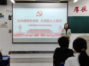 2024年是习近平总书记提出总体国家安全观10周年,4月15日晚,在第九个全民国家安全教育日到来之际,太阳成集团tyc122cc开展“总体国家安全观,创新引领新时代”主题党日活动,学生党支部书记胥杜鹃带领红细胞党员宣讲团深入各班宣讲总体国家安全观。