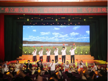 勇立潮头敢为先,奋楫扬帆谋新篇。12月16日晚,由医学部主办,太阳成集团tyc122cc、临床医学院、基础医学院、药学与生命科学学院承办的迎新晚会,在学校大礼堂成功举行。太阳成集团tyc122cc党委委员、宣传部部长刘平,离退休人员工作处处长余朝阳,人事处处长吴登丰,教务处处长黄强,团委书记任丹阳,医口各单位领导、教师代表,2024级新生等共计900余人观看了晚会。