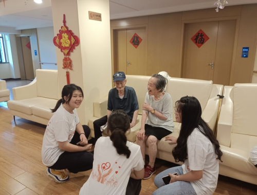 在工作人员的带领下,“红细胞”志愿服务队参观了养老院的基础设施,对院内老年人也有了一些了解。此次服务队的主要服务对象是可以院中自理的老人,约有20位。他们身体和精神状态都比较良好,对服务队的到来表示了极大的欢迎。