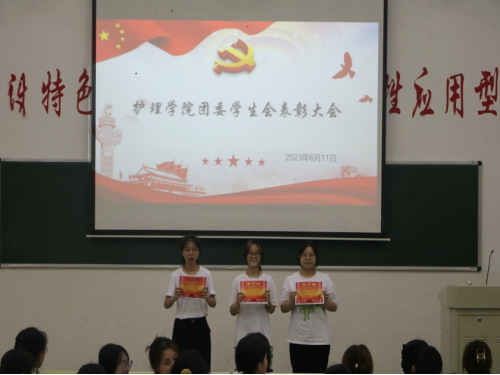 接下来,各负责人宣布赛事获奖情况。由胥杜鹃宣布两红两优获奖名单。温锦玲宣布最美志愿者获奖名单。刘含韵宣布“学习二十大,舞动新时代”舞蹈大赛获奖名单。纪晓倩宣布红细胞文明寝室评比获奖名单。周钟韵宣布5·12国际护士节文艺汇演获奖名单。