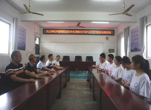 付垅中学校领导对“红细胞”服务队的到来表示热烈欢迎。段小波校长就付垅中学的基本情况、非遗小镇——付垅乡的青阳腔做了简要介绍,针对乡村教育发展痛点,提出区域适量集中弥补乡村教育的不足,并积极探索适合农村学生的德育途径,丰富学生的活动形式,通过开展劳动教育来提升核心素养。结合“红细胞”的专业方向,鼓励大家多关注中医药传统文化,培养对中医药传统文化文化自信,给予大家殷切期望。一字一句都表达出对乡村学子的关心与爱护,流露出对乡村教育事业的热爱与坚守。
