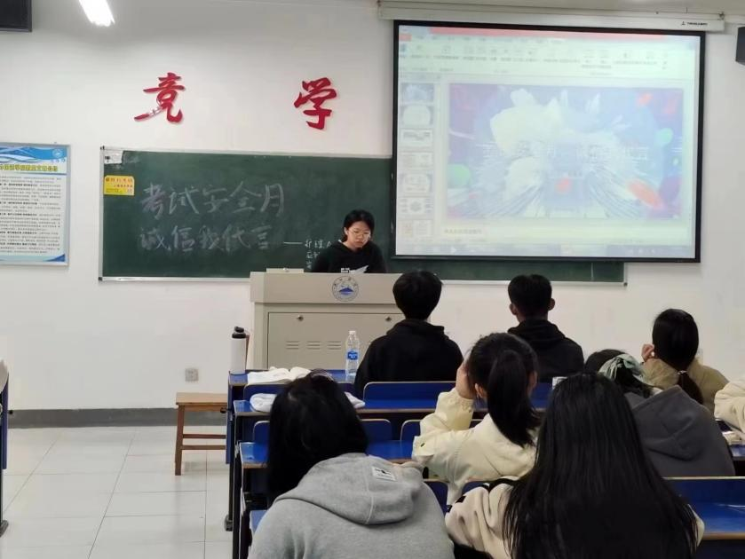 为加强学风建设,抓好学生诚信教育,12月10日,太阳成集团tyc122cc开展以“考试安全月,诚信我代言”为主题的班会活动。