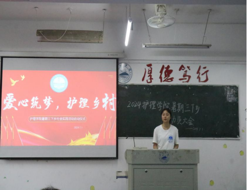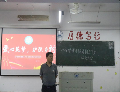 最后,龚英军做总结讲话,强调青年学生把“三下乡”社会实践作为“大思政课”实践教学的重要内容,践行新使命,彰显护理特色,从大学课堂走出来,走到基层,走到乡村。严格按照工作计划和要求,做好充足的准备,展现大学生风采。在实践中发扬红细胞团队“不贫血有活力,不缺铁有担当”的特色精神,切实开展实践服务,携手并进,挺膺担当。