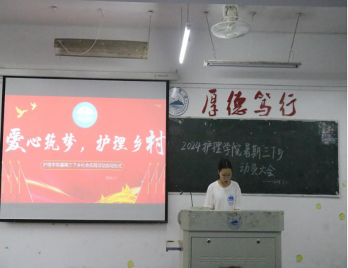 会上,曾思意认真组织动员,表达了“红细胞”小队不忘初心、牢记使命,深入农村,发扬不怕苦、不怕累的精神,在实践中普及科学知识,倡导健康文明生活,把知识、健康和快乐送进农家,丰富农村文化生活,提升农村卫生水平。在实践中提高自身思想政治素质,自觉做习近平新时代中国特色社会主义思想的坚定信仰者、积极传播者和忠实实践者,将“三下乡”社会实践作为思政课实践教学和新时代文明实践的重要载体。