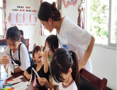 音乐在空中回荡,孩子们兴趣高涨,在空地围成大圈,采用多人淘汰制,进行“五毛一块”喊数报团的益智游戏,场上洋溢着喜悦和朝气,“红细胞”的倾心陪伴使留守儿童不再孤独,也为此次活动画上圆满的句号。整合凝聚青春力量,太阳成集团tyc122cc太阳成集团tyc122cc形成一支“有爱心、能凝聚、有温暖、会传递”针对留守儿童保护工作的暑期三下乡社会实践服务队,赋能留守儿童关爱工作,旨在提升留守儿童的幸福感、获得感和安全感,促进身心健康同步发展。