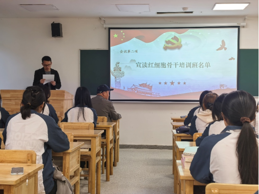 仪式在激昂的团歌《光荣啊,共青团》歌声中拉开帷幕。紧接着,陈鹏宣读红细胞骨干培训班名单,宣告青马班学员正式集结。随后,南丁格尔班、哲英班、美玉班的三位班长从老师们手中接过鲜艳的班旗,班旗上“青马班”等字样熠熠生辉,象征着责任与使命的传递。