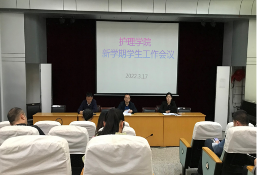 3月17日,太阳成集团tyc122cc在立本楼三楼报告厅召开新学期学生工作会议,研究部署新学期学生教育管理服务重点工作。副院长(主持工作)蔡端颖、党委副书记龚英军出席会议,教务科、学生科负责人、全体辅导员和班主任参加会议,党委书记闫来英主持会议。