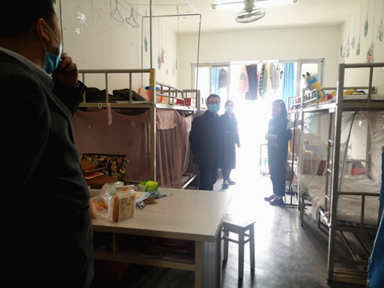 在学生寝室的检查中,闫来英看望了解除居家监测的返校实习生,了解同学在学校封闭管理中生活、学习、思想动态和研究生复试等方面情况,并对假期值班值守、疫情防控、防火防骗等工作作了要求。