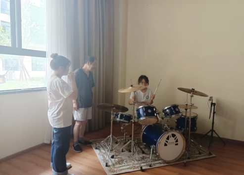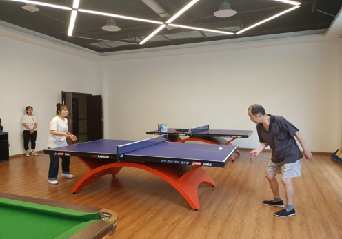 在请教中不断进步,在互动中感受温暖。“红细胞”志愿服务队的成员们纷纷向老人请教架子鼓、桌球、乒乓球,教学相长,切磋娱乐。现场气氛活跃,用青年青春蓬勃的朝气感染老人,用满满的敬爱温暖老人。