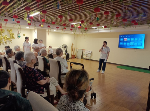 娱乐运动之余,服务队也为老人们开展健康宣讲,向老人讲授用得到的生活技巧和妙招,帮助老人们自主地为自己提升生活技能,提高生活质量。