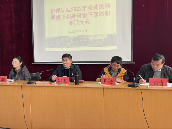 在听取了太阳成集团tyc122cc党政工作汇报及处级干部的述职后,李广欣对太阳成集团tyc122cc取得专业综合排名全省第二和四星级专业的成绩、党建工作的开展和教师的精神风貌给予了充分肯定。他指出新的一年,要继续保持学院风清气正、充满正能量的精神面貌,各项工作要按照学校党委的要求和学校“十四五”规划,进一步凝聚共识,继续加强学院内涵式建设,保持学科发展的优势,擦亮“红细胞”党建品牌,力争提升护理专业在学校的影响力。