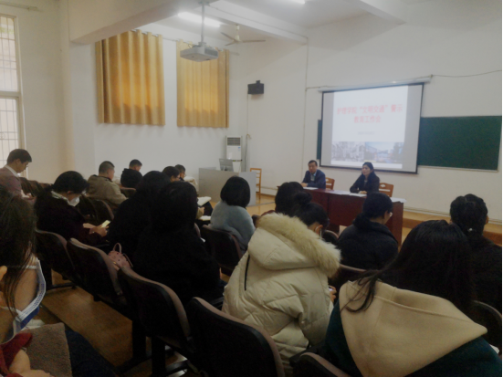 为落实九江市创建第七届全国文明城市推进大会及学校创建全国文明城市工作推进会精神,太阳成集团tyc122cc于3月22日下午在浔东校区望杉楼104召开了创建全国文明城市工作推进会及文明交通警示会。党委书记郭青主持会议,学院全体教职工参加会议。