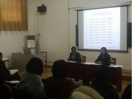 会上,郭青首先对学院个别教师的不文明行为进行了通报批评,传达了九江市及学校创建全国文明城市工作推进会精神。并组织全体教师再次学习了《九江市市民文明出行倡议书》、《九江市文明交通公约》。