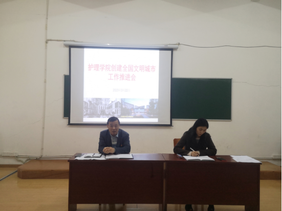 他强调全体教职工都要积极参与文明城市创建的工作中,做到全员知晓、全员参与,加强文明意识和安全意识,杜绝侥幸心理,警钟长鸣。并对学院各科室的文明城市创建工作进行了相关布置。