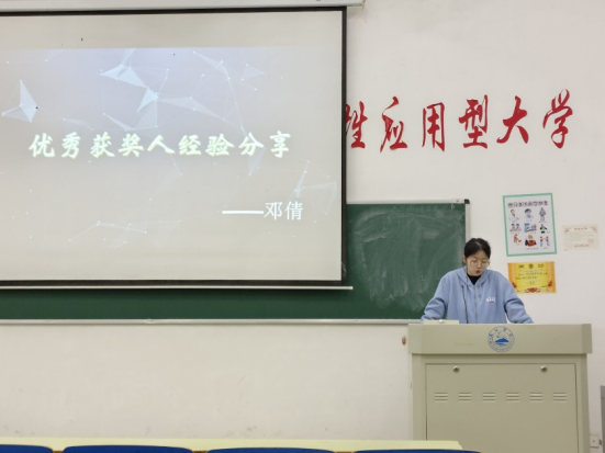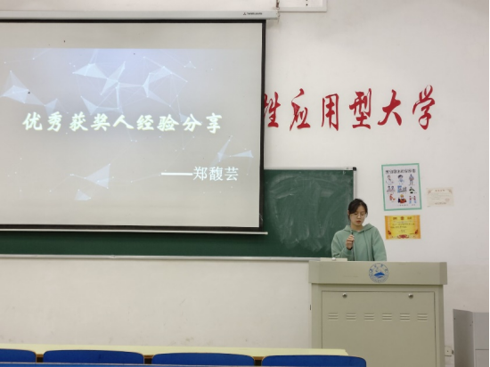 会上,创新创业实践部负责人向同学们讲述了"互联网+"大赛的历史,就互联网大赛的参赛类型和流程展开了叙述,讲解了相应的格式和要求。随后大赛优秀获奖人郑馥芸、邓倩分别分享了自己的参赛经验,强调了优秀参赛作品需具备创新性和可行性,表达了认真态度的重要性。会上同学们聚精会神,认真聆听,积极记录知识要点。