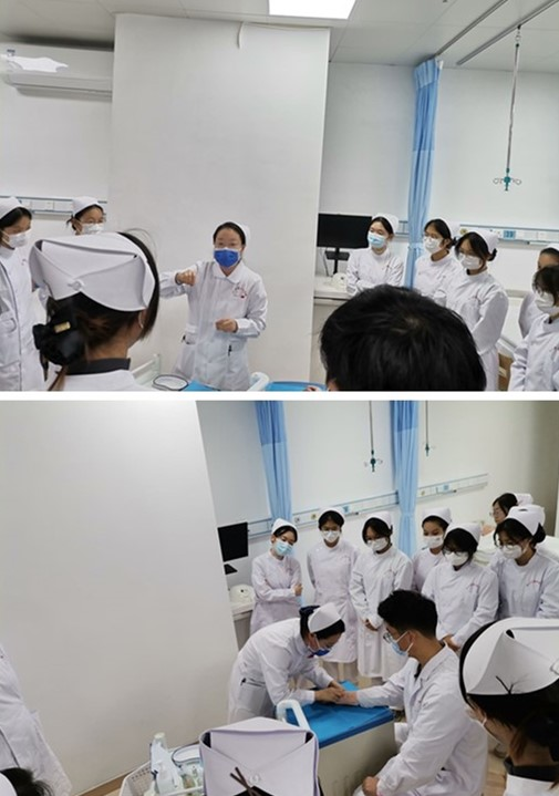 第一场公开示范课于2024年10月28日在护理实验楼304开展,由护理学基础教研室刘秀秀老师主讲,课题是《皮内、皮下注射》。刘老师以皮内、皮下注射需要注意事项的回顾引入,紧接着给学生做示范、并提醒要点,灵活应用理论与实践结合。讲解完毕组织学生按照小组进行分工合作,分别以患者和护士身份进行皮内、皮下注射训练。刘老师以娴熟的教学技艺、丰富的教学经验、扎实的课堂训练为全体老师奉献一场精彩的公开课,起到了很好的示范作用。教学过程中注重夯实基础、技能训练,学生在老师的指导下积极参与教学过程、提升动手实践能力。