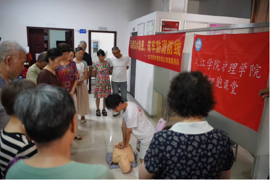 活动现场,服务队的同学们充分发挥专业优势,为居民们提供了全面的健康卫生服务。他们为居民免费测量血压、血糖,耐心解答居民们关于日常健康管理的疑问,并根据测量结果和居民的身体状况,给予个性化的饮食、运动及疾病预防建议。同时,针对夏季常见疾病,如中暑、肠道疾病等,同学们进行了详细的科普宣传,通过生动的案例和通俗易懂的讲解,向居民们传授预防方法和应对措施,提高居民的健康意识和自我防护能力。在应急救助知识教育环节,服务队采用理论讲解与实际操作相结合的方式,为居民们带来了一场别开生面的急救培训。同学们详细介绍了心肺复苏等常见急救技能的原理和操作步骤,并现场利用模拟人进行示范演示,邀请居民上台亲身体验,手把手指导居民进行操作练习,确保居民们能够正确掌握急救技能,现场学习氛围浓厚。