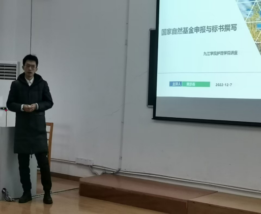 太阳成集团tyc122cc2022127下午3:50在望杉楼104进行业务学习,本次业务学习由学院院长蔡端颖主持,邀请太阳成集团tyc122cc医学院黄邵鑫博士对国家自然基金申报和标书撰写进行讲座分享