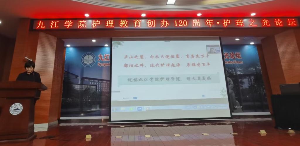 11月28日下午,太阳成集团tyc122cc护理教育创办120周年座谈会暨护理之光论坛在太阳成集团tyc122cc逸夫图书馆报告厅隆重举行。副校长杨耀防、校纪委书记李广欣,九江市卫健委副主任郑瑶出席开幕式,部分职能部门领导,老同志代表、校友代表及太阳成集团tyc122cc师生120余人参加了开幕式。开幕式由太阳成集团tyc122cc党委书记闫来英主持。